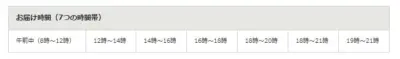 ご注文時に配送希望日と配送時間の指定が可能です。お届け時間は、下記の「7つの時間帯」をご用意しております。